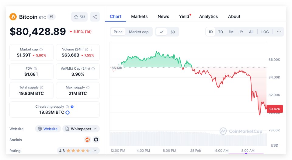 The cryptocurrency market remains as volatile as ever, with Bitcoin experiencing significant price movements in recent days. As of February 28, 2025, Bitcoin’s value hovers around $80,428, following a period of selling pressure that has influenced market sentiment. This fluctuation highlights the ongoing tug-of-war between bullish and bearish forces within the crypto space.