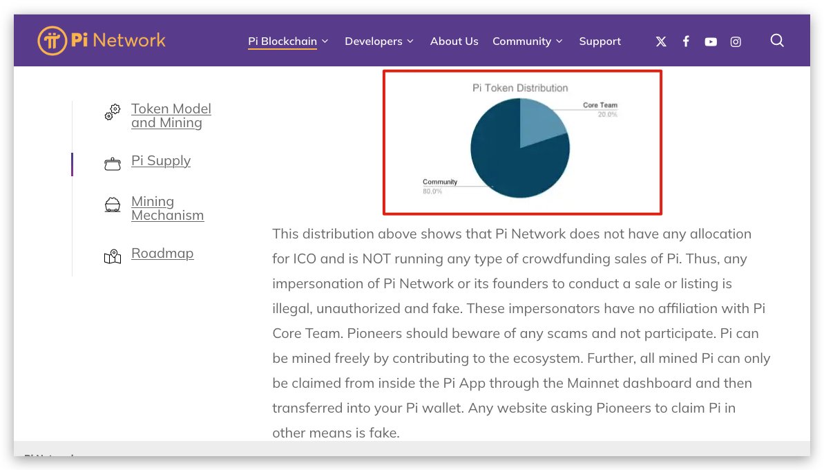 This supply distribution follows the original principles of the Pi Network Whitepaper, published on March 14, 2019. 80% of the total supply is allocated to the community, while 20% is designated for the Pi Core Team. This ensures that the community remains the main pillar of the Pi Network ecosystem, not just as miners but also as active users shaping the digital economy around Pi.